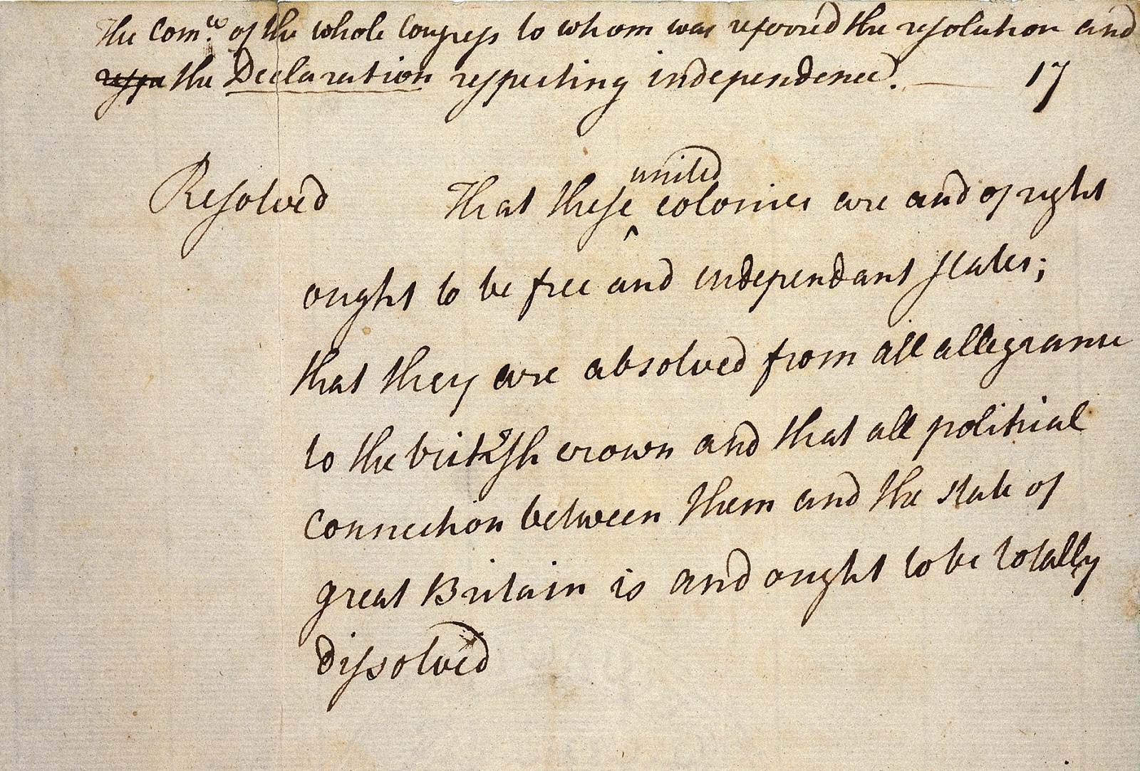 1765. They passed a resolution which made “the following declarations